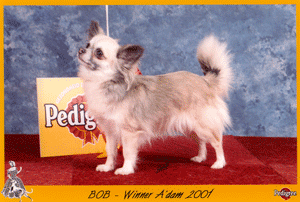 Dutch Chihuahua Club Clubmatch 2009: 1 VP - Best Puppy Female Longcoat and she became Best Longcoat Brace with her brother Honnesty